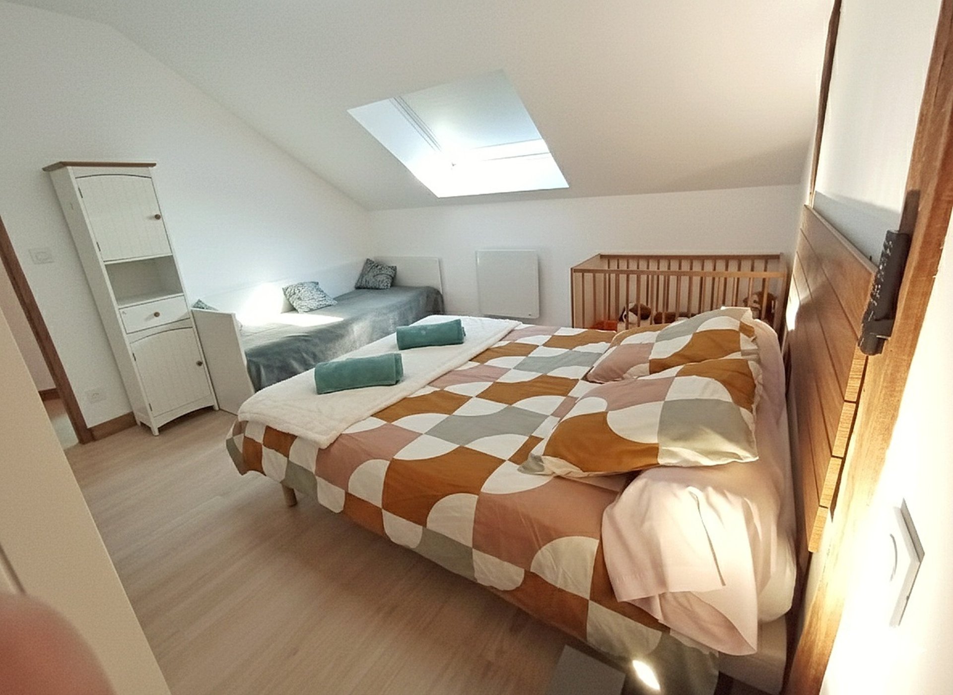La Chambre Enfants / Duo : Un espace modulable comprenant un grand lit, un lit banquette et un véritable lit bébé.