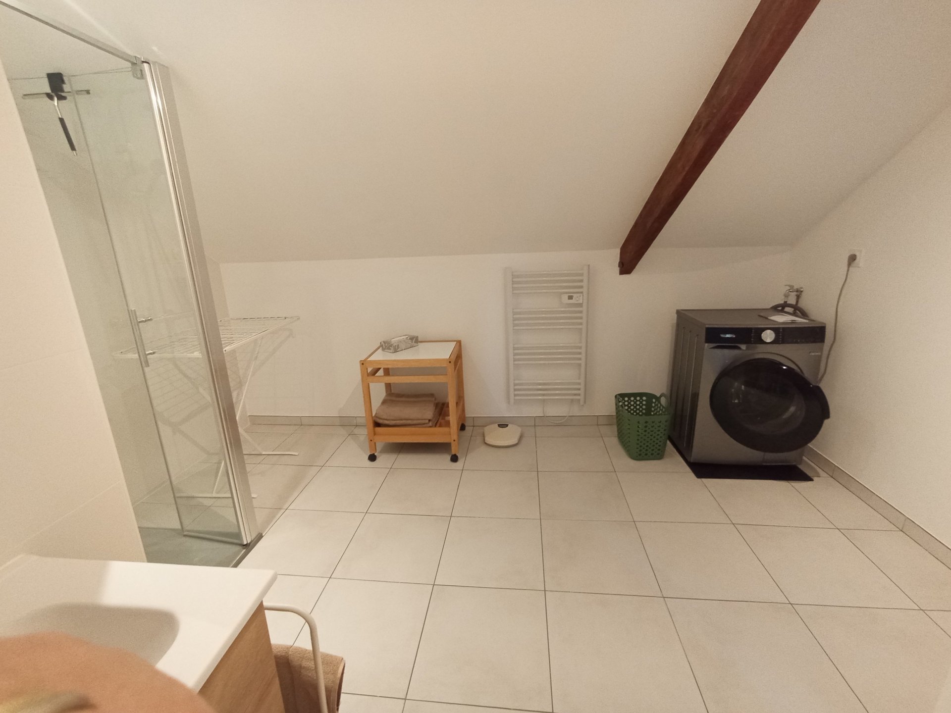 Salle d'eau : Une grande salle de bain avec douche spacieuse et machine à laver (idéal pour les longs séjours).